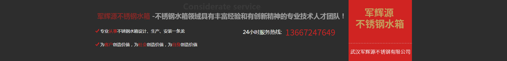 武漢軍輝源不銹鋼有限公司是華中地區專業(yè)生產不銹鋼水箱的環(huán)保企業(yè),公司集不銹鋼水箱開發(fā)設計、生產、銷售、維修、售后服務為一體。